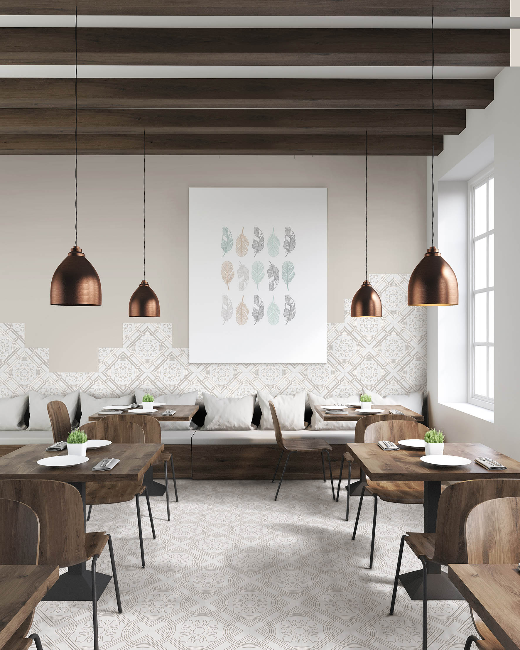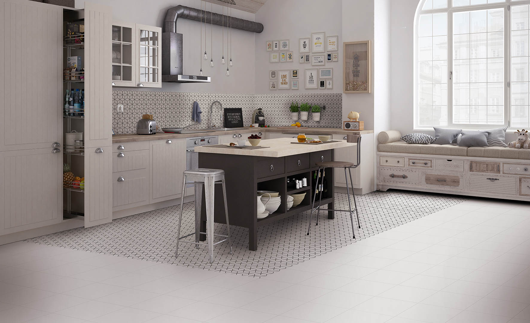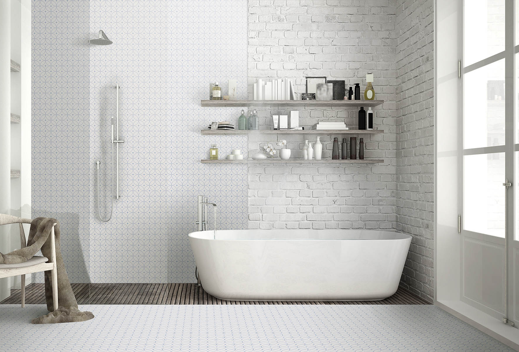 La serie Alhambra de azulejos para baño y cocina presenta un estilo tradicional ornamental pero actualizado.