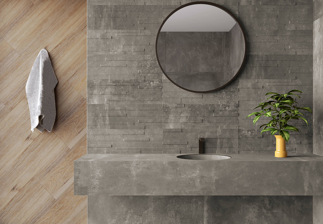 Su diseño matérico aporta profundidad visual y personalidad a los ambientes, convirtiéndola en una opción ideal para interiores modernos y arquitectónicos.