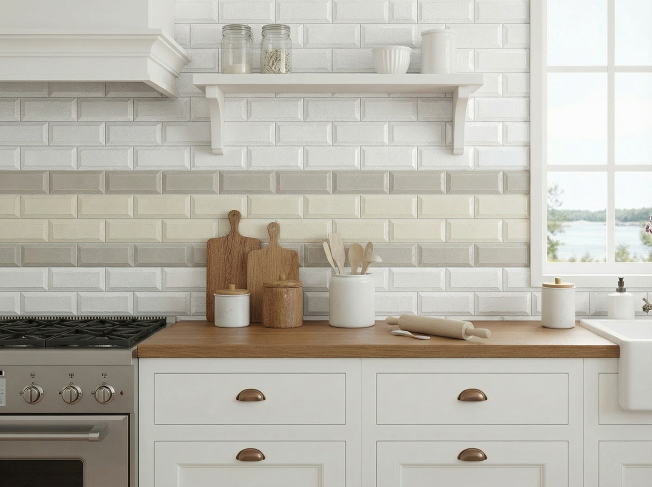 Revestimiento cerámico biselado para cocinas y baños