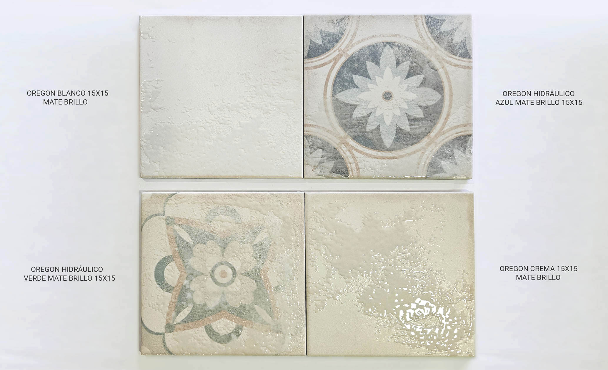 Este azulejo Oregon 15×15, con su diseño que evoca los diseños hidráulicos le da un toque vintage y supone una elección duradera y siempre vigente. Con la capacidad de transformar cualquier espacio en un rincón con encanto antiguo pero contemporáneo, se erige como una opción versátil para diversos ambientes. La variedad gráfica de las bases y los decorados permite crean espacios únicos, junto a su juego brillo/mate presente en cada pieza.