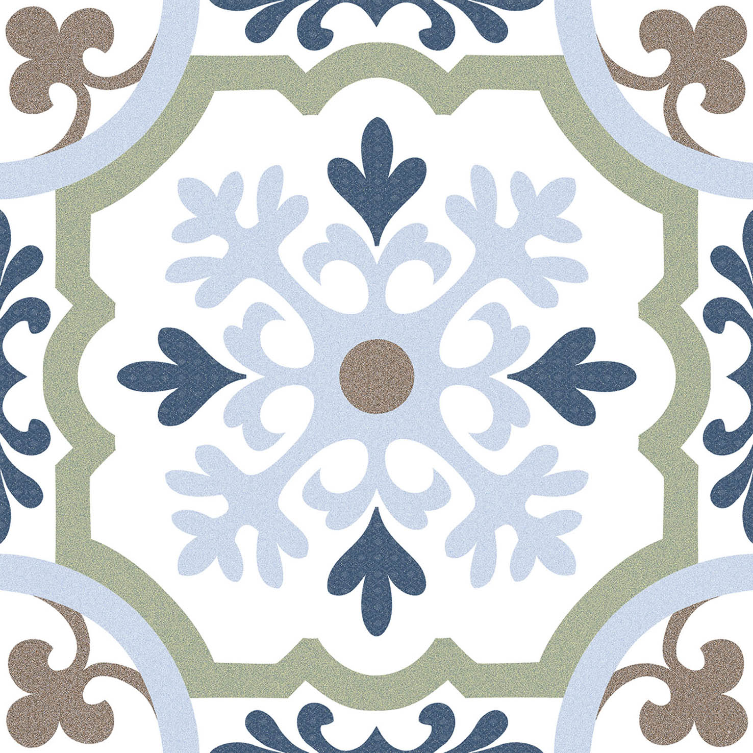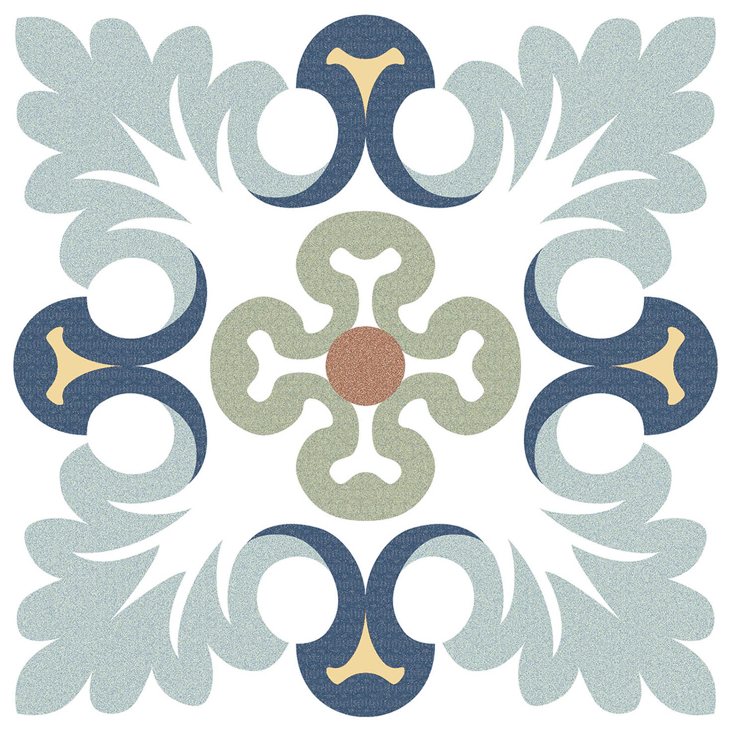 La Serie Córdoba reproduce fielmente el encanto del azulejo hidráulico tradicional, pero fabricado en porcelánico mate no rectificado, lo que aporta: