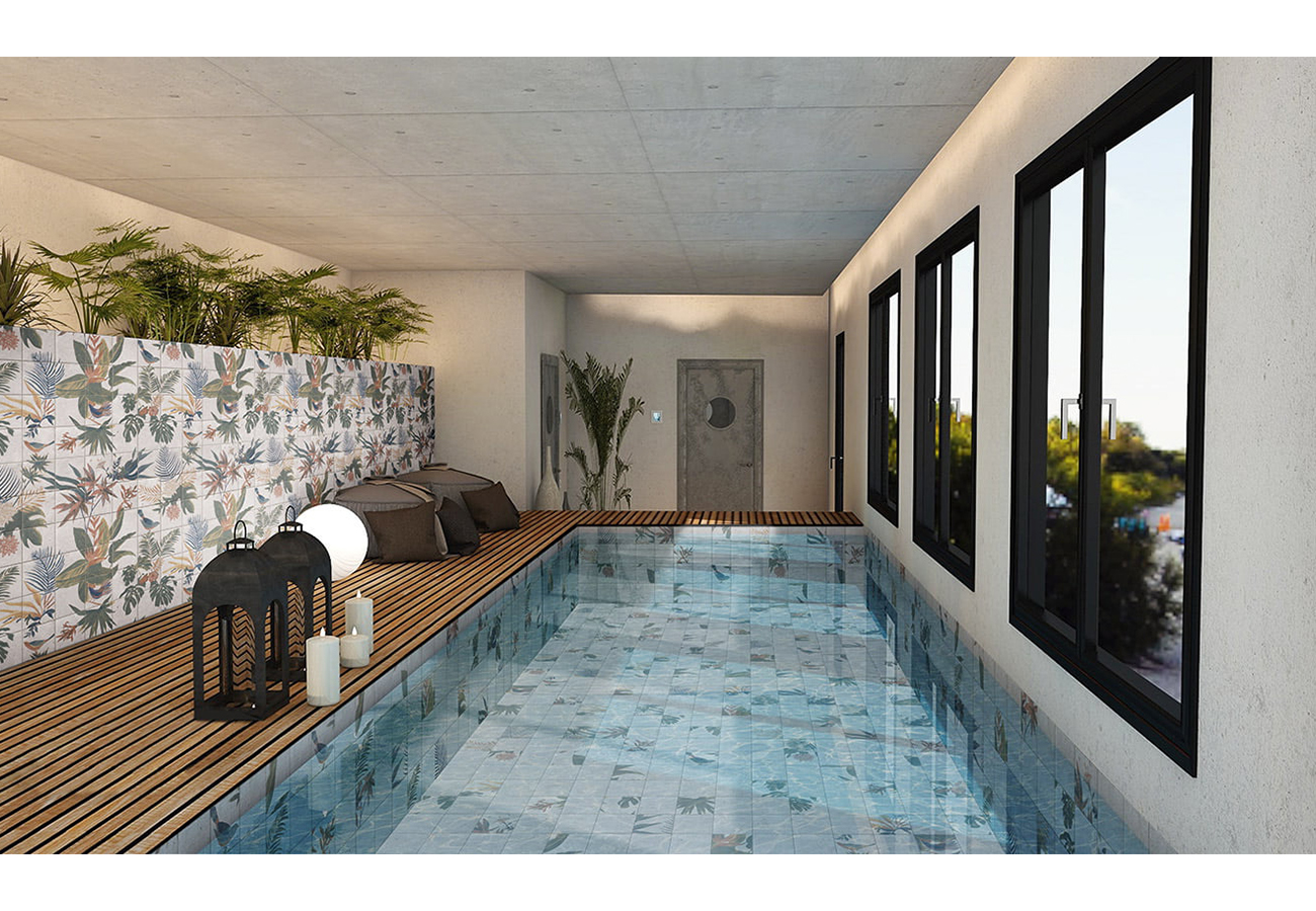 El Decor Samui 20X20 se integra perfectamente en espacios con una estética bohemia, tropical o mediterránea, combinando de forma armoniosa con materiales naturales como madera, piedra y cerámica artesanal. Puede utilizarse como pieza decorativa en paredes, suelos, zócalos o detalles en duchas y piscinas, creando un ambiente fresco y relajante.