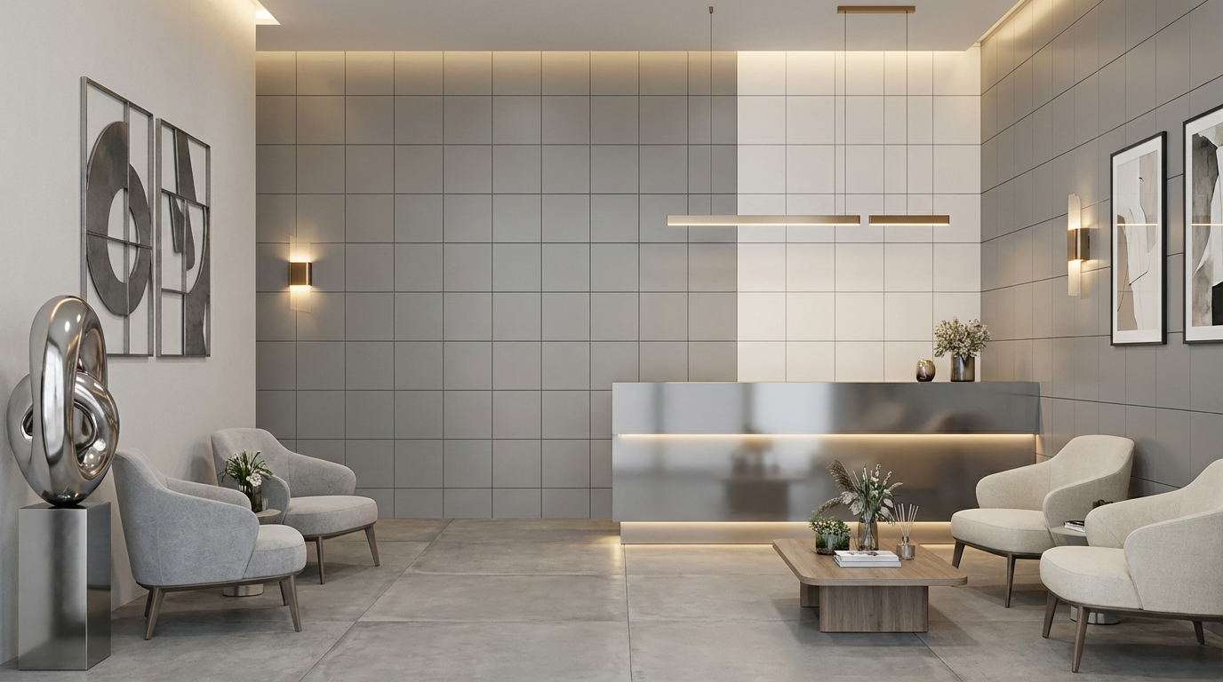 Ideal para baños, cocinas, salones o espacios comerciales, Element Acero es perfecto para quienes buscan un revestimiento de alto impacto visual y gran durabilidad, ideal para proyectos con un estilo contemporáneo o industrial.