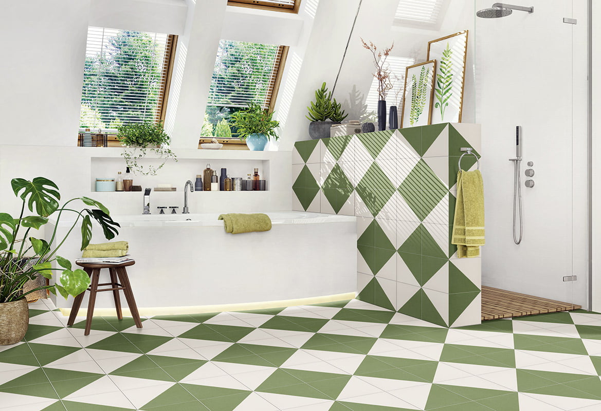 La serie Fired está compuesta por azulejos para baño, cocina y todo tipo de estancias con diseño geométrico que ofrece múltiples posibilidades creativas.
