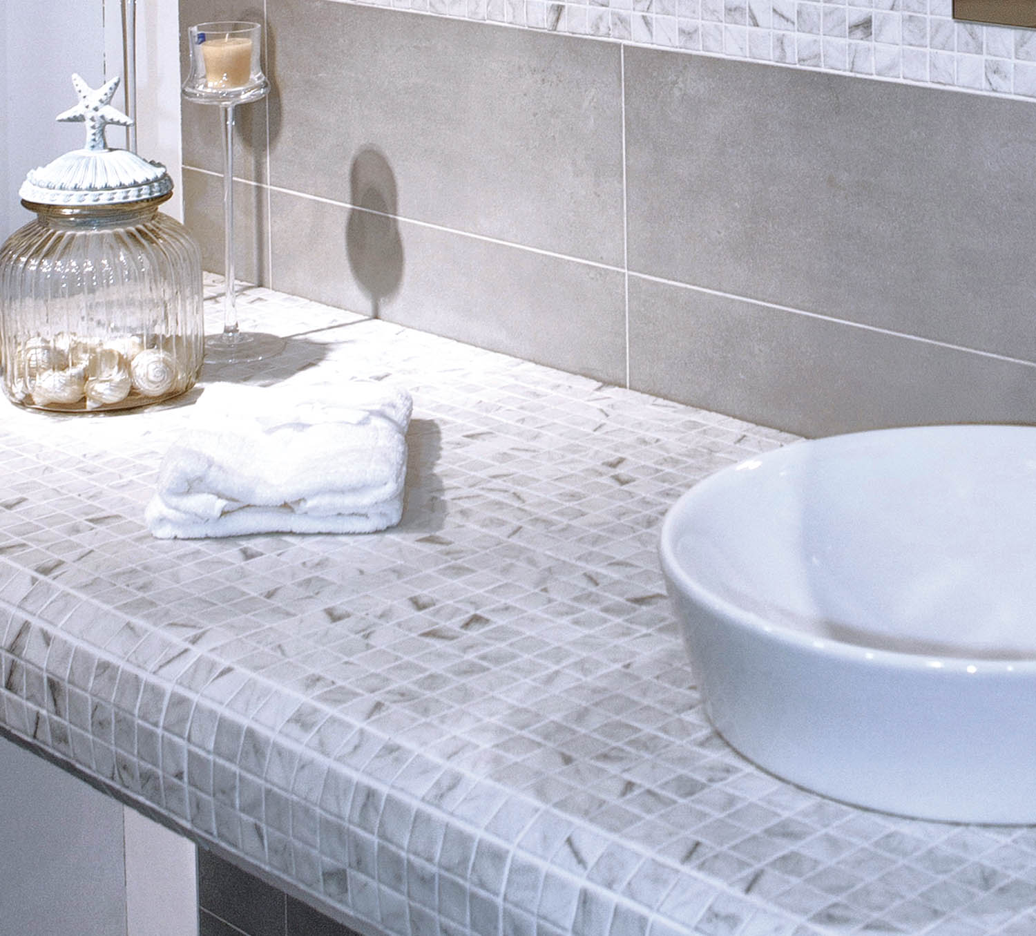 El mármol calacatta se muestra en toda su elegancia en esta serie para decorar tu espacio. Ideal para recubrir todo tipo de espacios en zonas húmedas como piscinas, baños (especialmente en la zona de la ducha) o spas. Al ser una malla de teselas puede adaptarse a todo tipo de formas curvas en piscinas , pilares cilíndricos, etc.