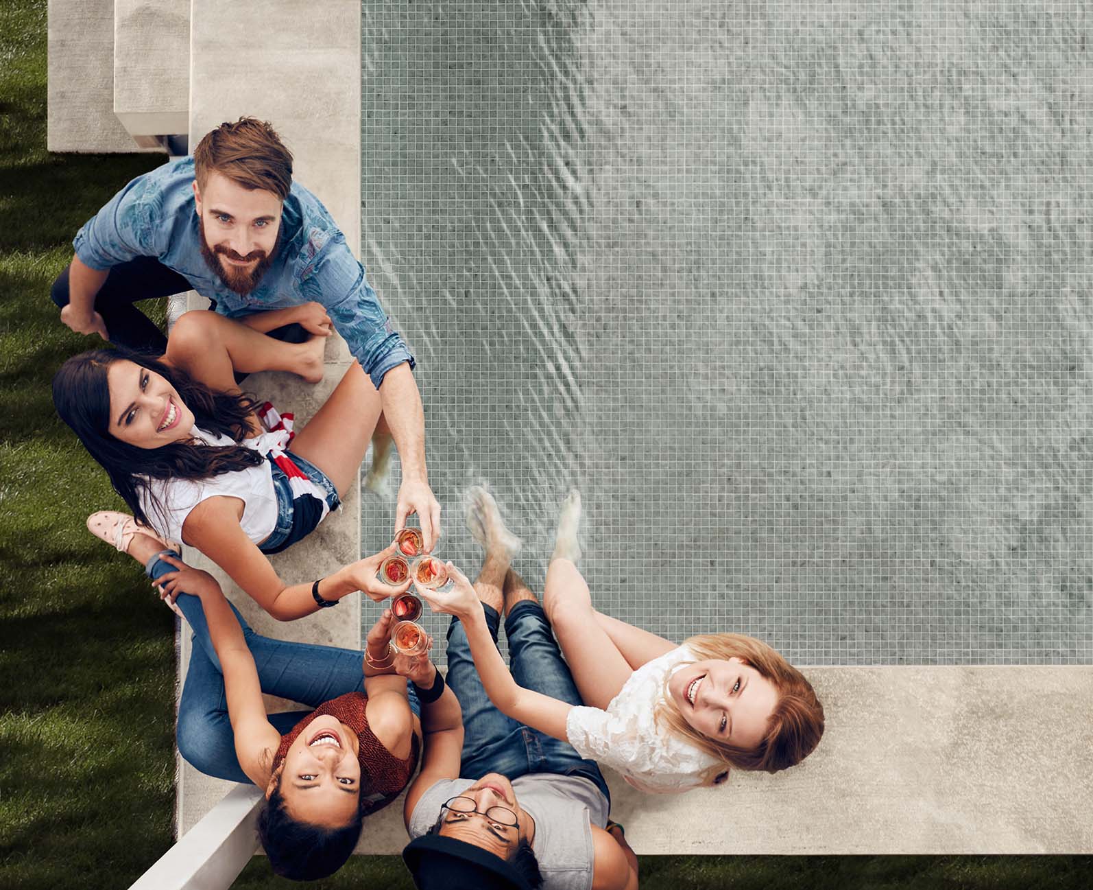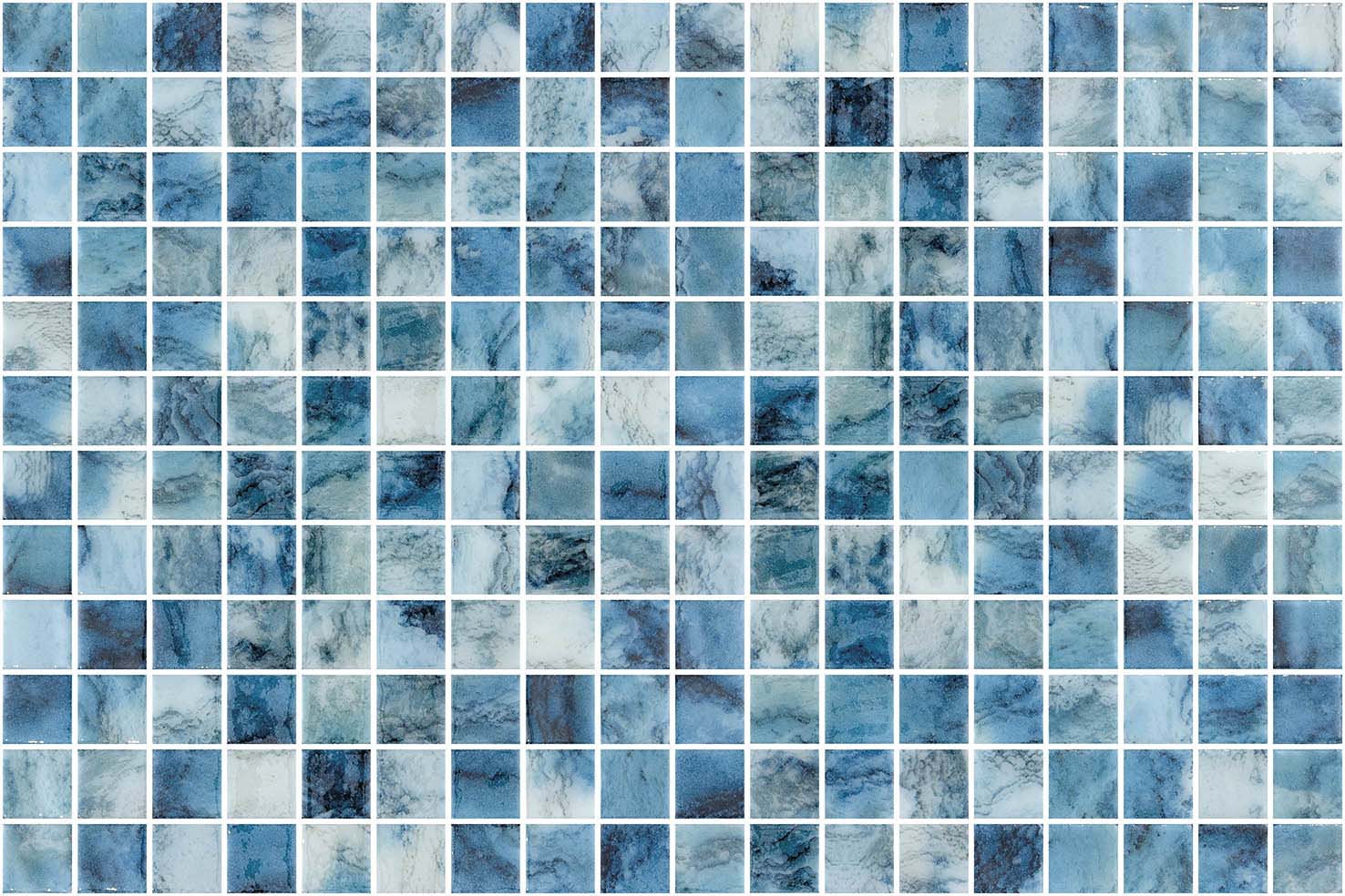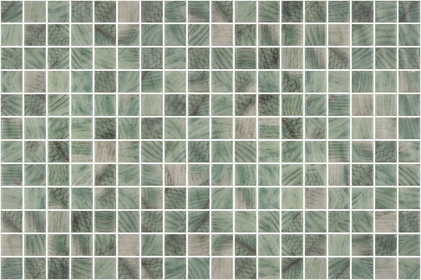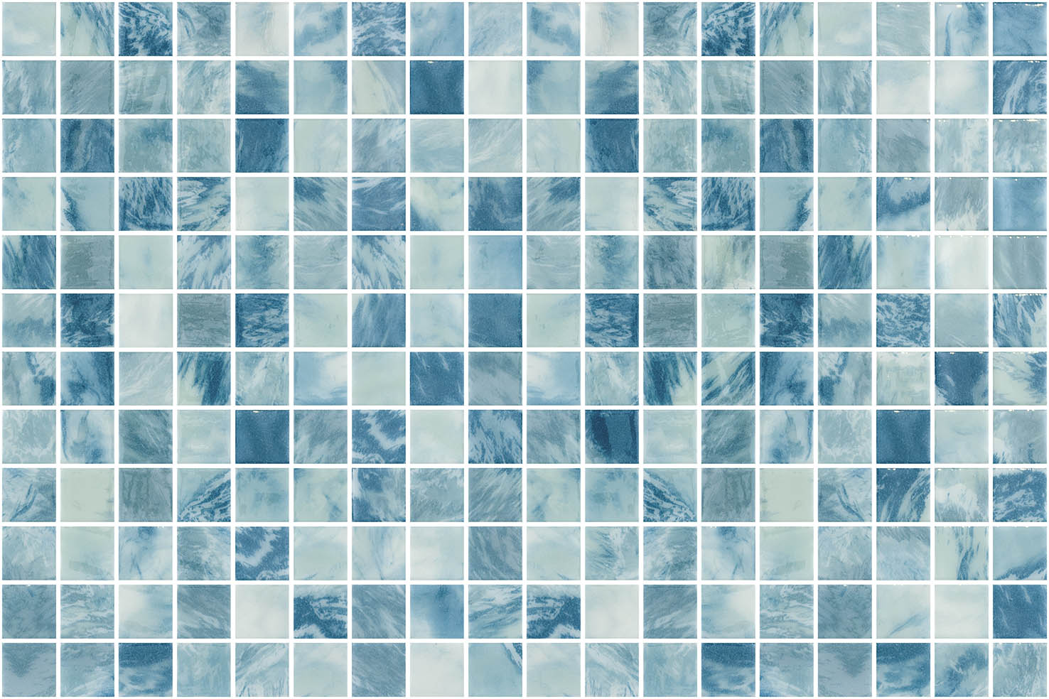 Serie de gresite en mosaico vítreo con variaciones de tonos y diferentes gráficas en las teselas ofreciendo mayor riqueza cromática. Ideal para recubrir todo tipo de espacios en zonas húmedas como piscinas, baños (especialmente en la zona de la ducha) o spas.