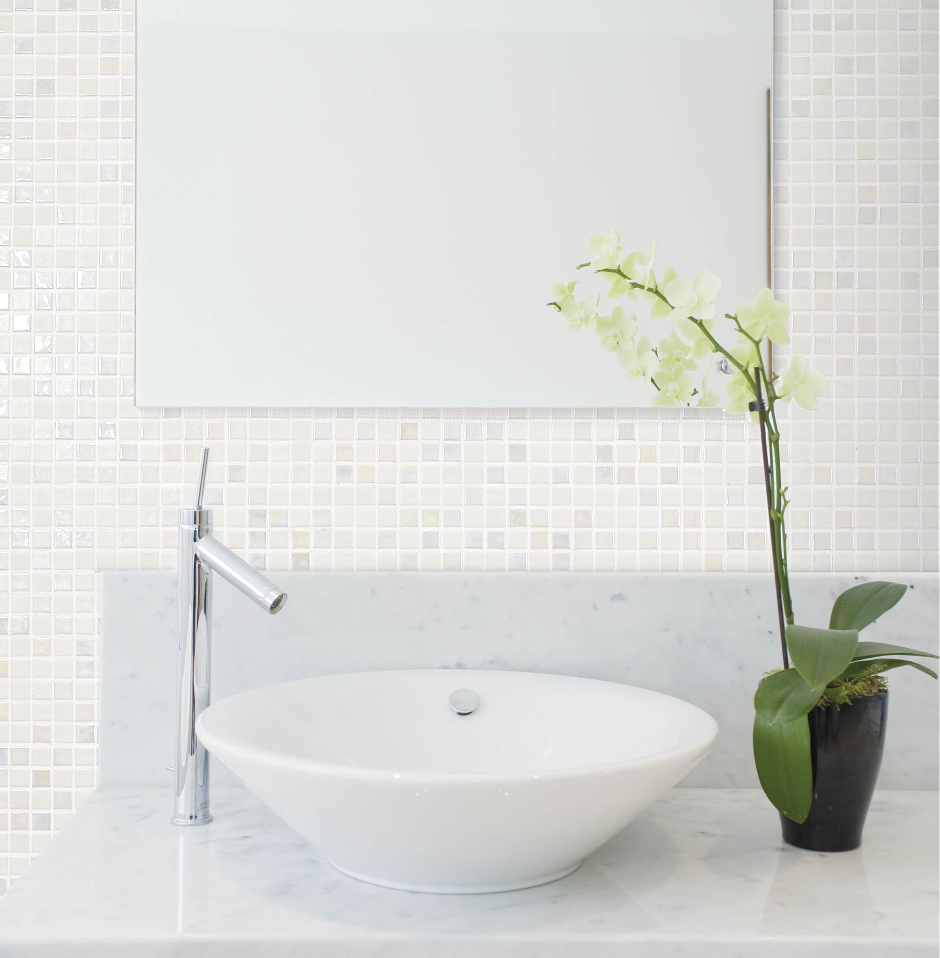 La serie Tessa en blanco o negro propone un juego de brillo/mate elegante y minimalista para tu espacio. Ideal para recubrir todo tipo de espacios en zonas húmedas como piscinas, baños (especialmente en la zona de la ducha) o spas. Al ser una malla de teselas puede adaptarse a todo tipo de formas curvas en piscinas , pilares cilíndricos, etc.