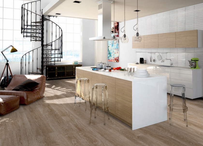 Además, al ser porcelánico, ofrece una durabilidad y facilidad de mantenimiento que la madera natural no puede igualar, lo que lo convierte en una opción ideal tanto para proyectos residenciales como contract.