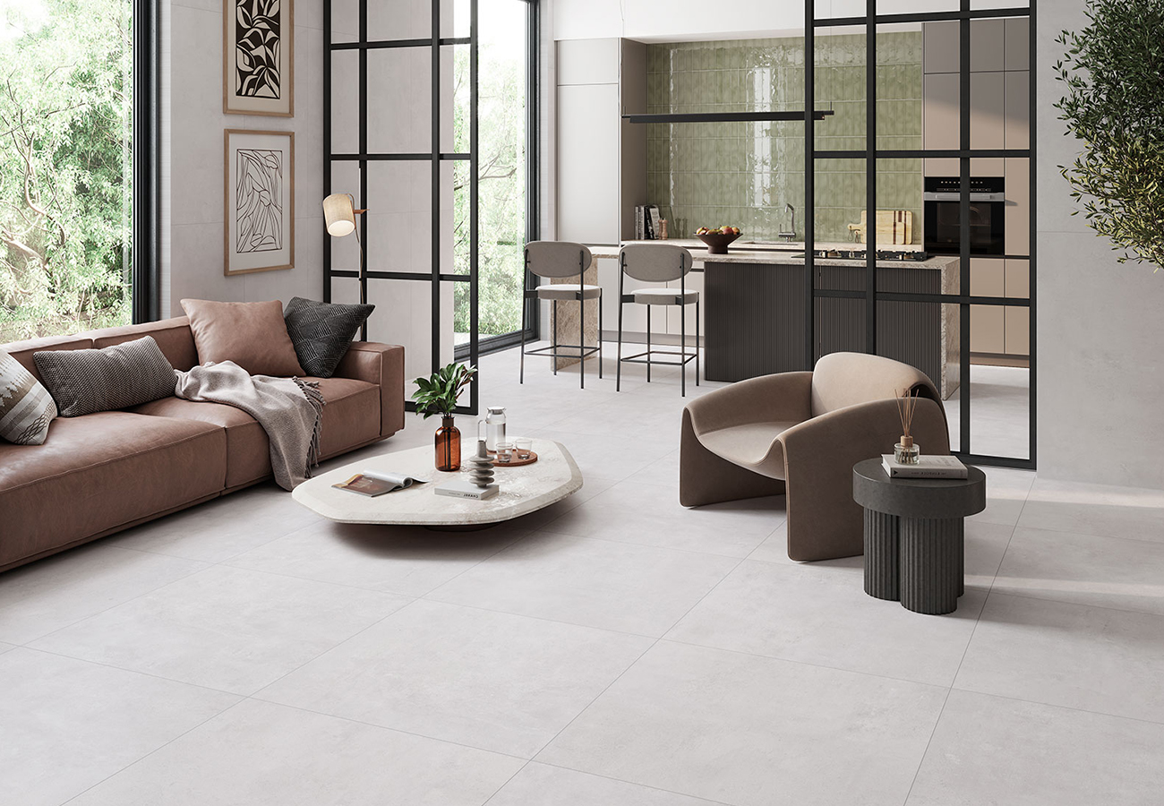 El 60×120 es uno de los tamaños más versátiles en pavimento porcelánico, ideal para salones, cocinas y baños contemporáneos.