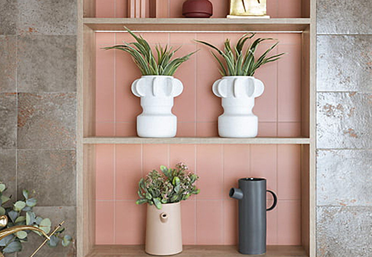 El diseño de este azulejo, con su tono flamingo, es ideal para quienes buscan aportar un aire fresco, luminoso y acogedor a sus ambientes. Su sutil mezcla de rosa cálido con toques suaves proporciona un equilibrio perfecto, ideal para baños y cocinas que necesitan de un toque de color, pero sin saturar el espacio. Además, gracias a su formato rectangular, se pueden crear combinaciones de piezas que aporten una sensación de continuidad en los diseños de las paredes.