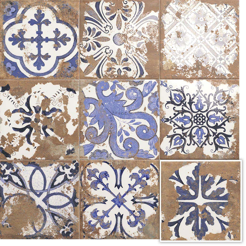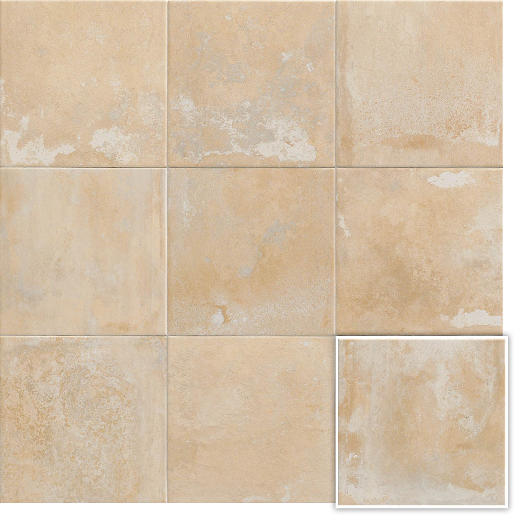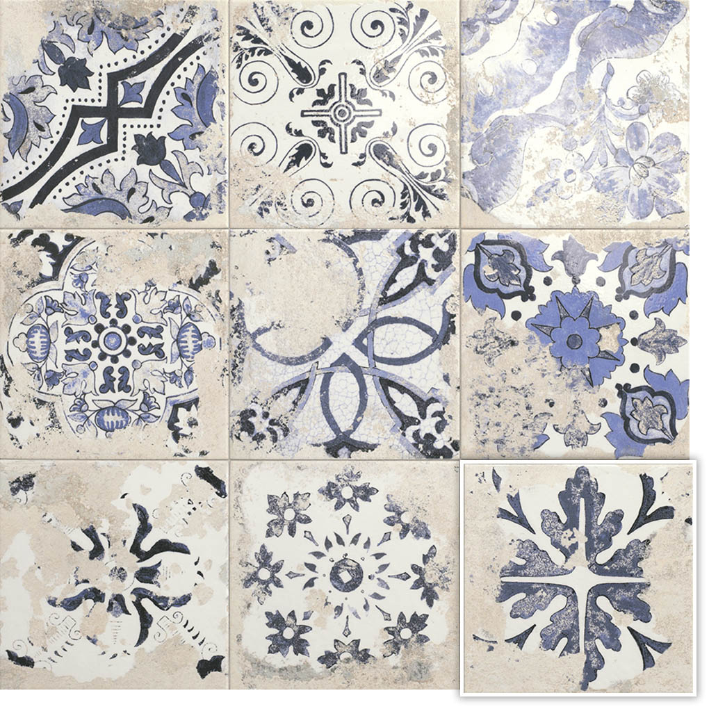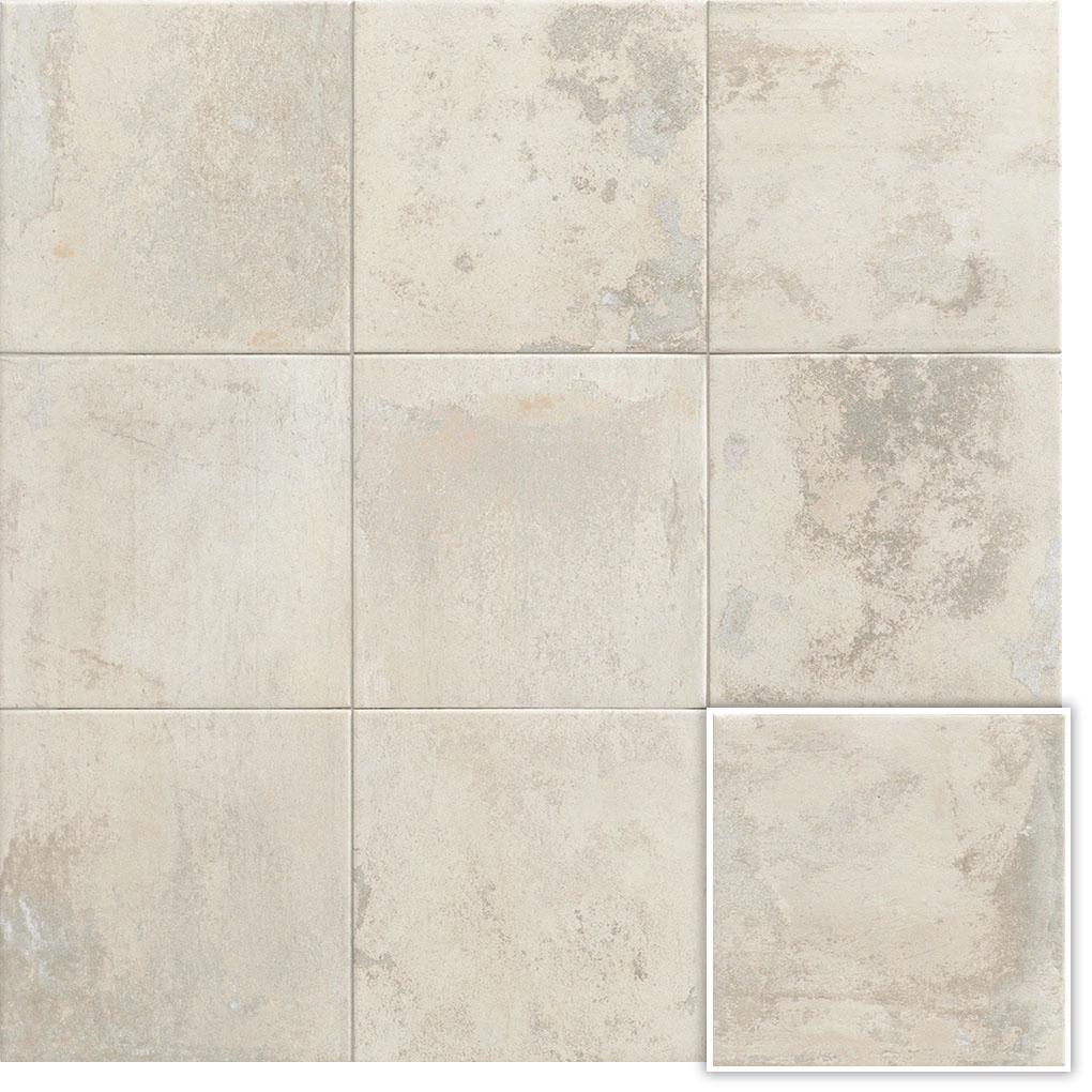 Esta colección de azulejo porcelánico se enfoca en texturas desgastadas que generan una variedad en la gráfica , evitando repeticiones en el diseño y evocando la estética del azulejo rústico artesanal.