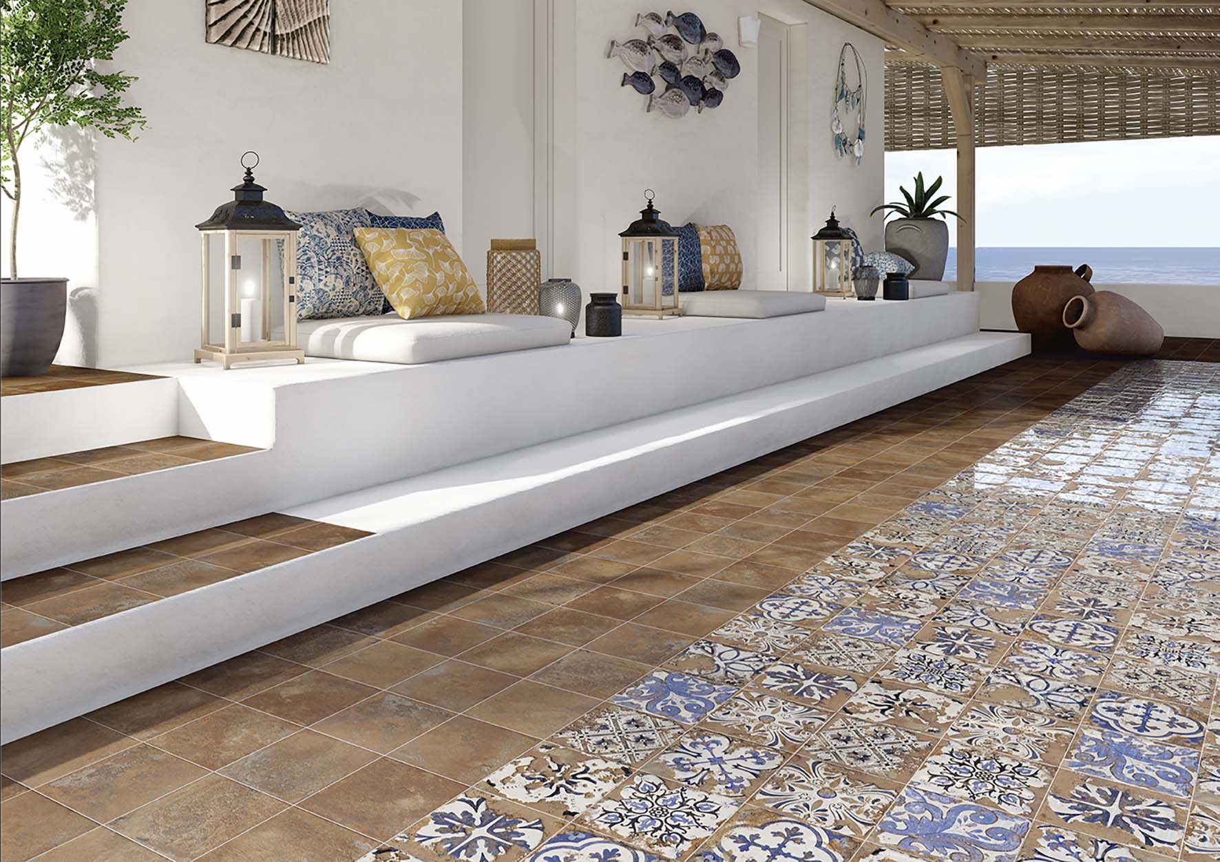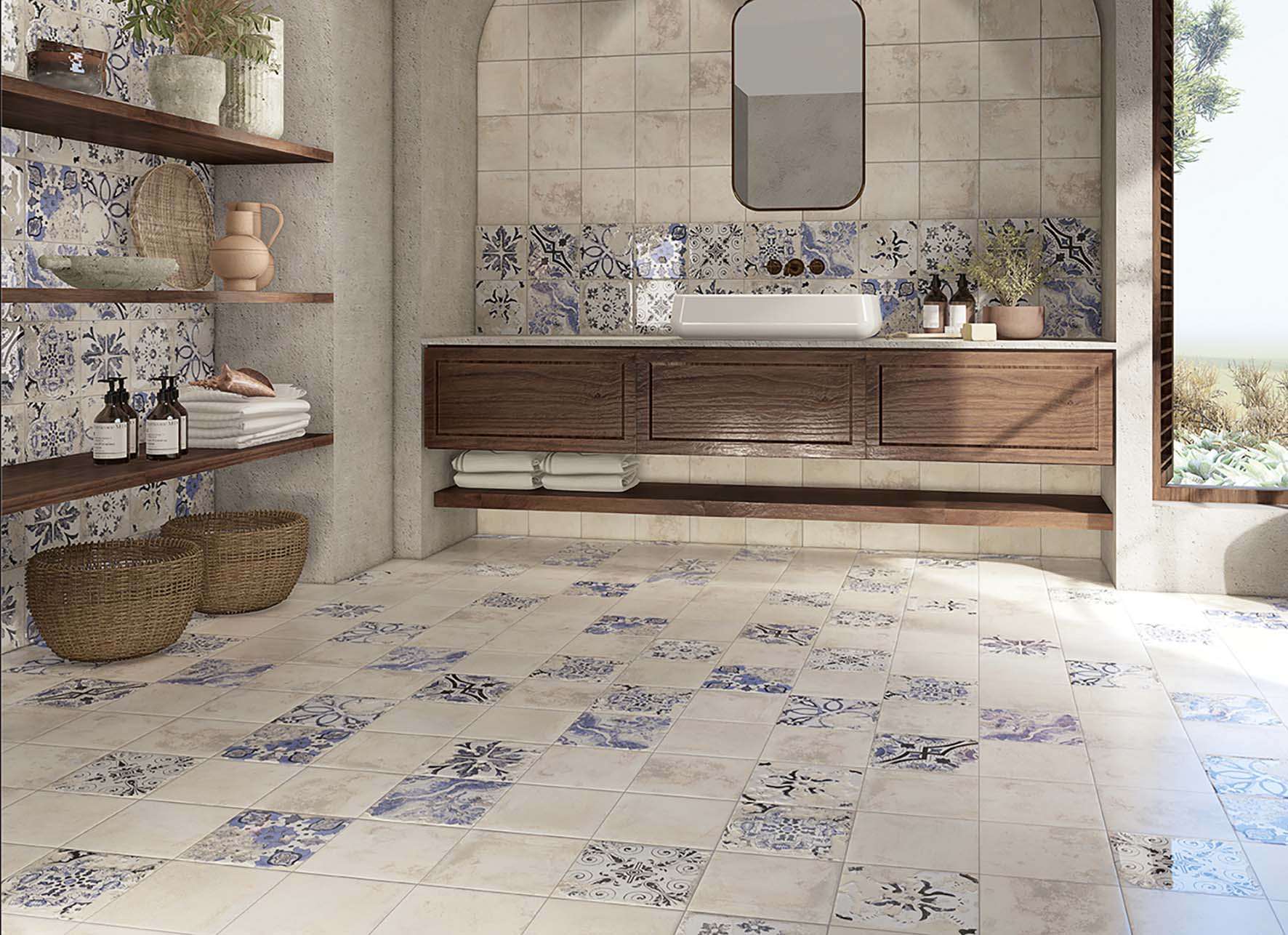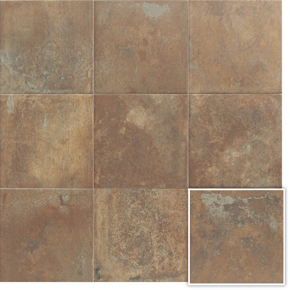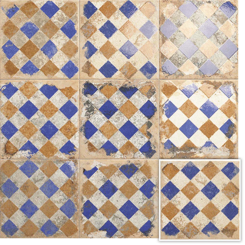 Esta colección de azulejo porcelánico se enfoca en texturas desgastadas que generan una variedad en la gráfica , evitando repeticiones en el diseño y evocando la estética del azulejo rústico artesanal.