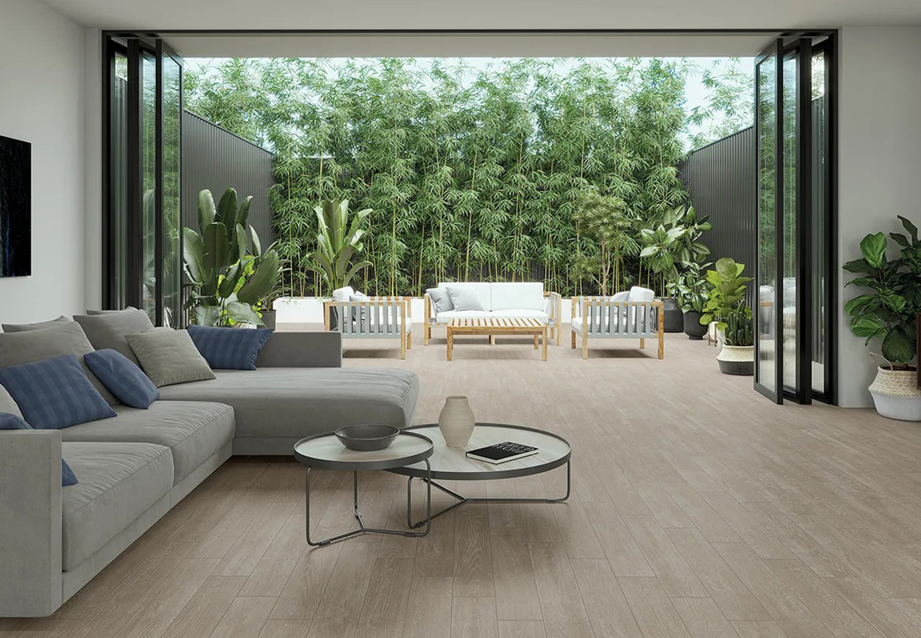 - Efecto uniforme: Su formato rectificado reduce las juntas, ofreciendo una estética continua y limpia.