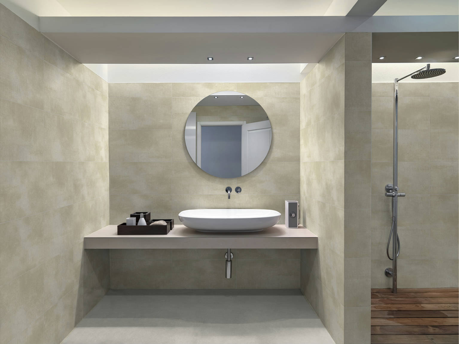 Natura Beige de Keros Cerámica está disponible en dos formatos: 30×60 cm (12″x24″) y 20×50 cm (8″x20″). Este modelo presenta un acabado mate y tonalidad beige suave, ideal para crear ambientes modernos y sofisticados en interiores y exteriores protegidos, como baños, cocinas, salones, pasillos, terrazas y patios.