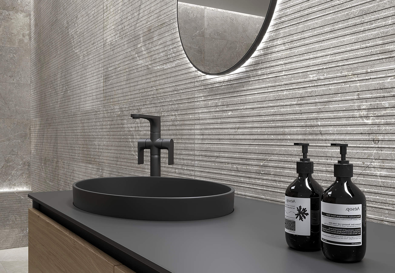 Nature Gris RLV forma parte de la serie Nature, lo que permite combinarlo con otros productos de la línea, como el Nature Perla RLV, para crear ambientes armoniosos y sofisticados. Su borde rectificado asegura una instalación precisa y limpia, sin juntas visibles, lo que mejora el acabado final del espacio.