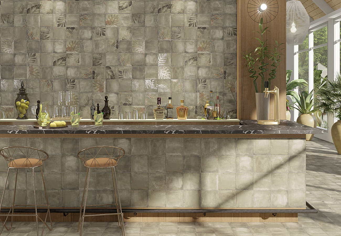 Su formato 20×20 cm permite diferentes opciones de instalación, desde patrones geométricos hasta diseños aleatorios, adaptándose a distintos estilos decorativos. Su acabado mate-brillo refuerza el efecto desgastado, perfecto para interiores con esencia industrial, rústica o retro.