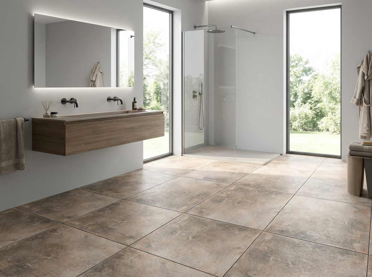 El acabado mate ligeramente texturizado de su superficie añade profundidad visual al material, sin perder la sensación de uniformidad. Esta textura sutil no solo recrea la naturalidad de los materiales pétreos, sino que también mejora el comportamiento antideslizante, facilitando su uso en espacios interiores y exteriores protegidos, como terrazas cubiertas, patios interiores o balcones techados.