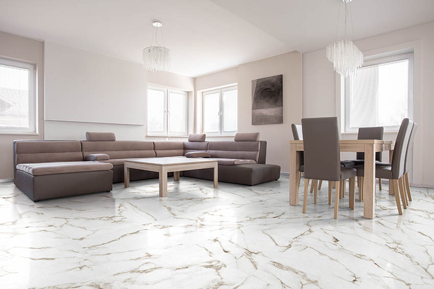 Serie de pavimento mármol calacatta disponible en brillo y en mate.