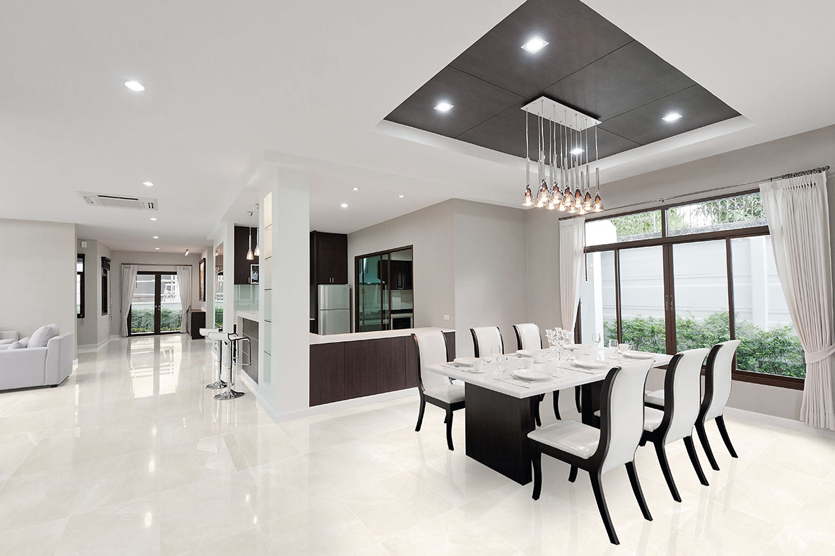 Serie de pavimento mármol brillo disponible en marfil y perla.