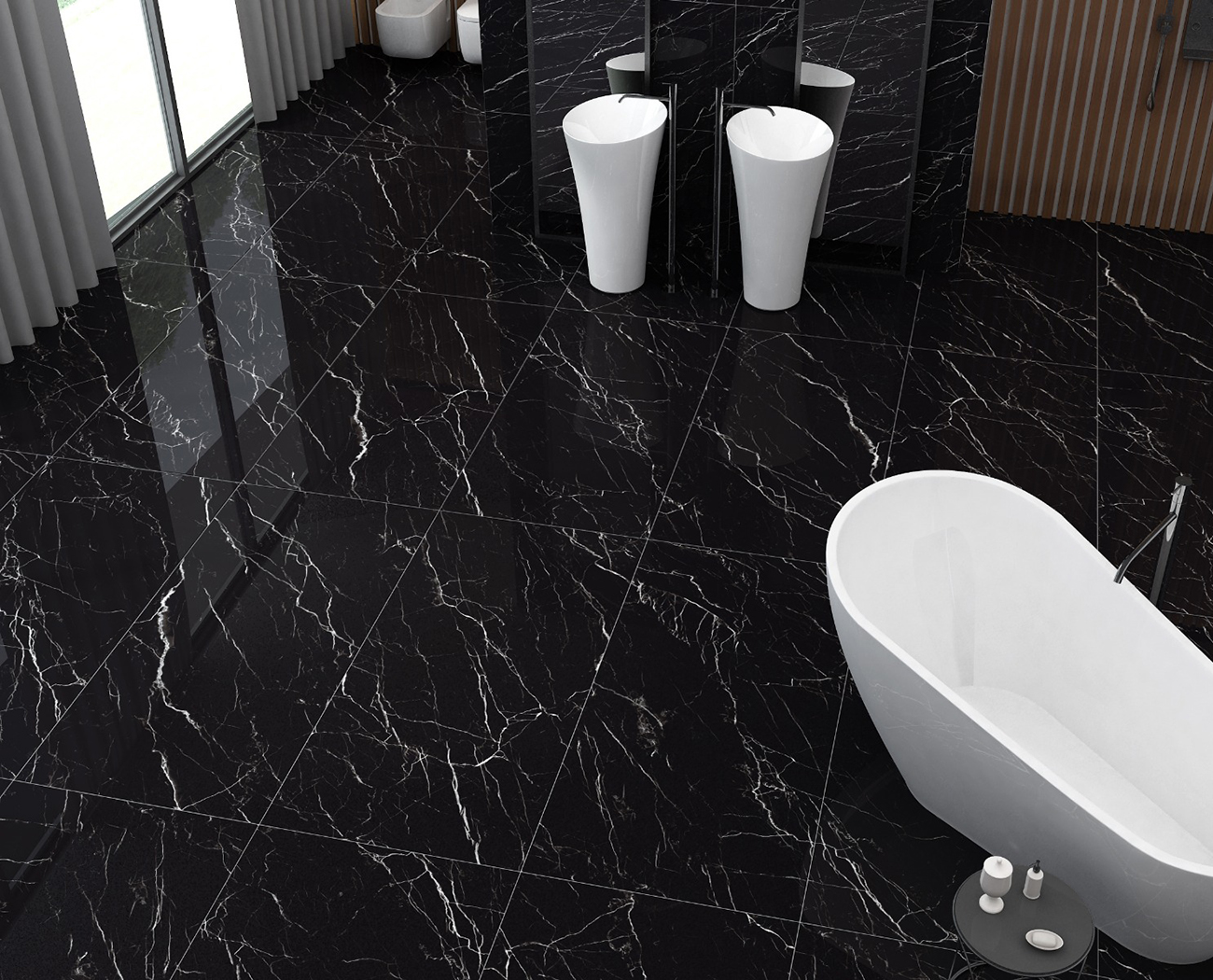 Colección CARRARA BLACK 60×120: La Sofisticación Intensa del Porcelánico Pulido de Rock Ceramic