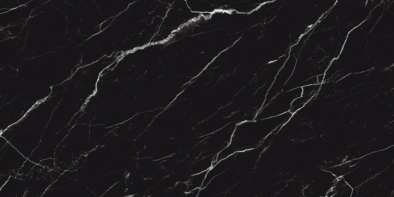 El atractivo principal de CARRARA BLACK reside en su espectacular contraste cromático. La base es un negro profundo y uniforme, evocando la solidez de la obsidiana, sobre el que se dibujan vetas blancas y grises claras, dramáticas y quebradizas. Estas vetas, que imitan la fractura natural de la piedra, aportan luz y movimiento, transformando un suelo o una pared en una pieza central de la decoración.