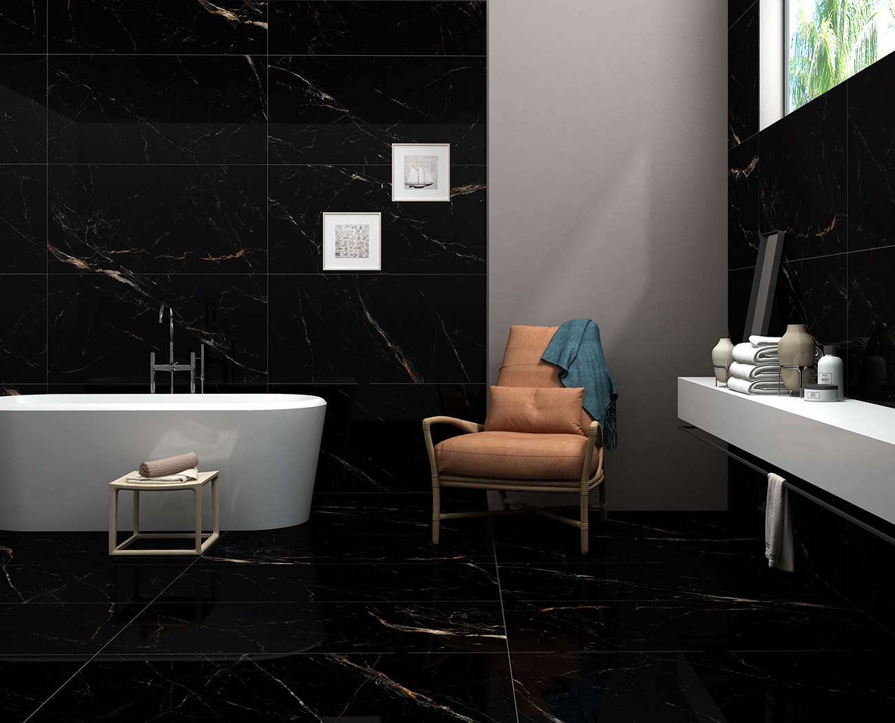 El formato 60×120 cm es ideal para pavimentos de alto standing y revestimientos espectaculares, como paredes de acento o duchas de diseño, donde su elegancia es innegable.
