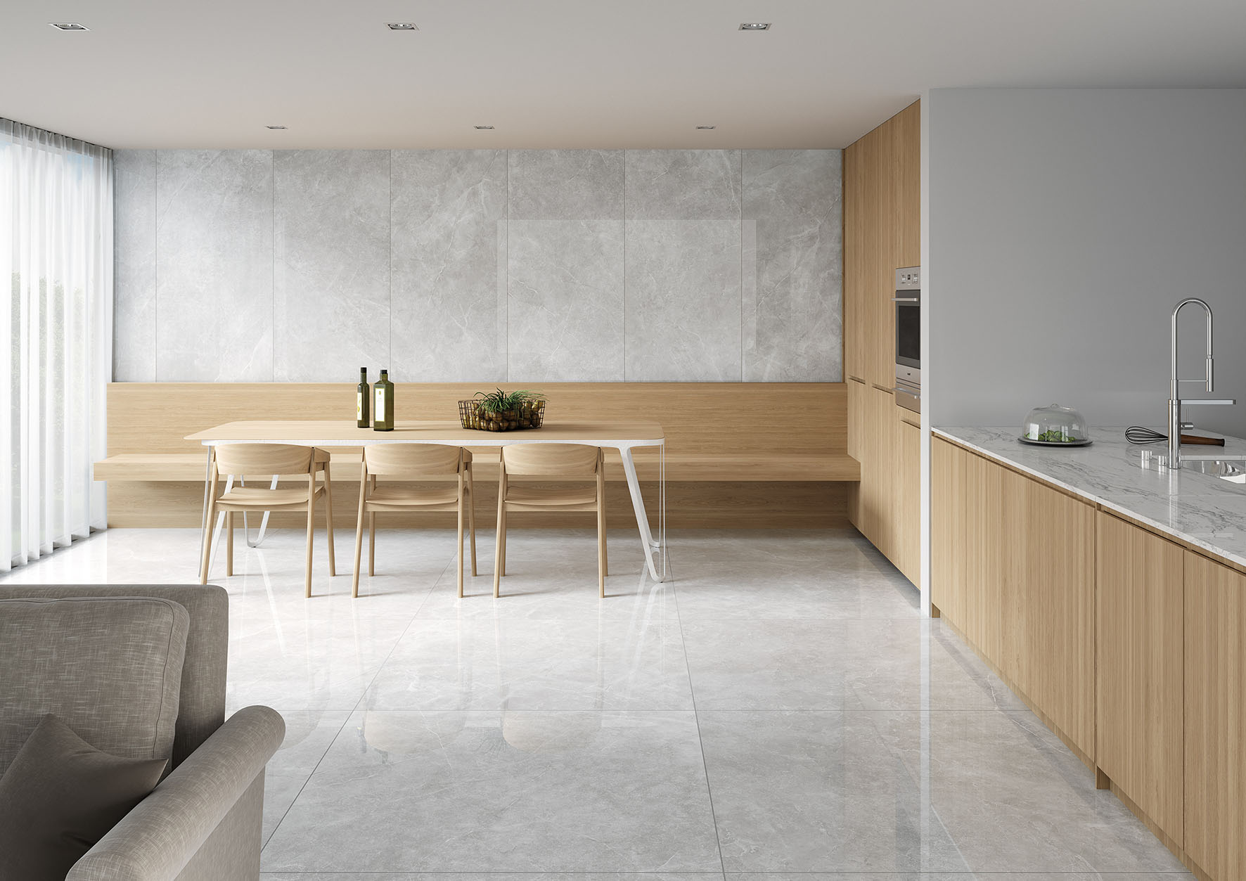 Gracias a su rectificación precisa, los bordes de cada azulejo garantizan una instalación uniforme y acabados impecables, con líneas limpias que elevan la estética de cualquier espacio. Su resistencia a la humedad, las manchas y el desgaste diario lo hace especialmente adecuado para áreas de alto tráfico, mientras que su fácil mantenimiento asegura una belleza duradera.