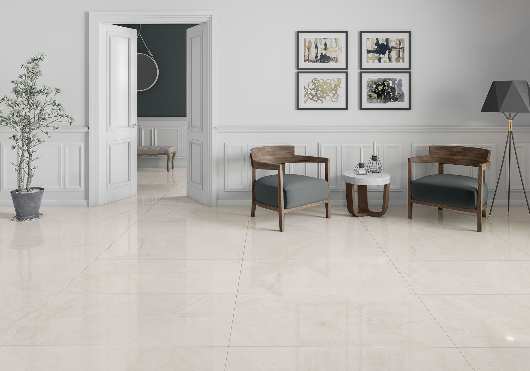 Porcelánico 60×120 rectificado brillo.