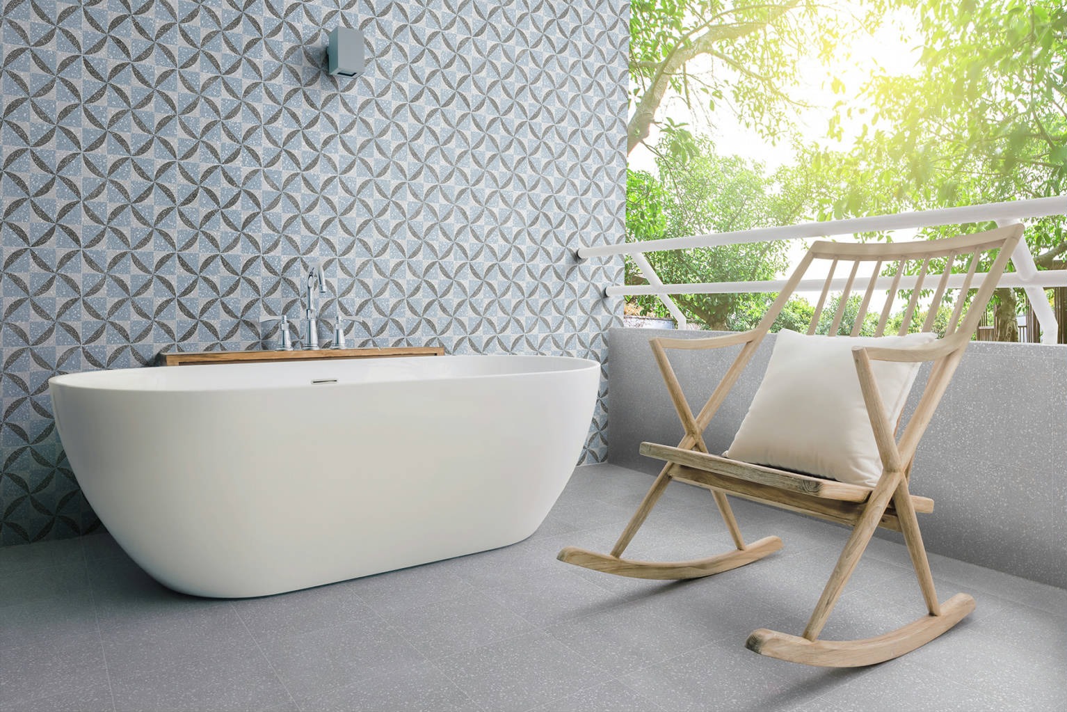 Estéticamente, el diseño geométrico sutil que recorre la superficie del azulejo añade un detalle decorativo que enriquece el conjunto sin restar sencillez. Esta discreta textura hace que Santa Mónica Azul funcione tanto como fondo decorativo como punto focal en ambientes donde se desea destacar una pared, una zona húmeda o un rincón especial.
