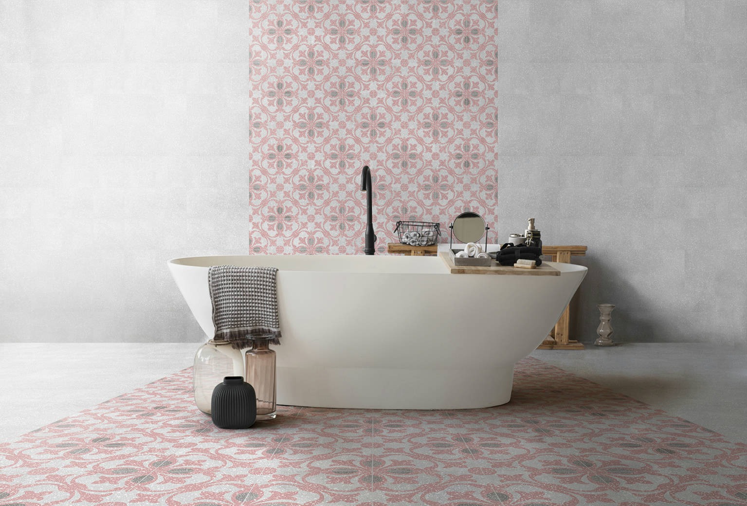El formato 25×25 cm del Santa Mónica Rosa es especialmente versátil. Permite composiciones geométricas, mosaicos, cenefas o revestimientos completos que se adaptan tanto a superficies pequeñas como a muros amplios. Este tamaño facilita también la instalación, al tiempo que minimiza las juntas visibles, ofreciendo un resultado más uniforme y elegante.