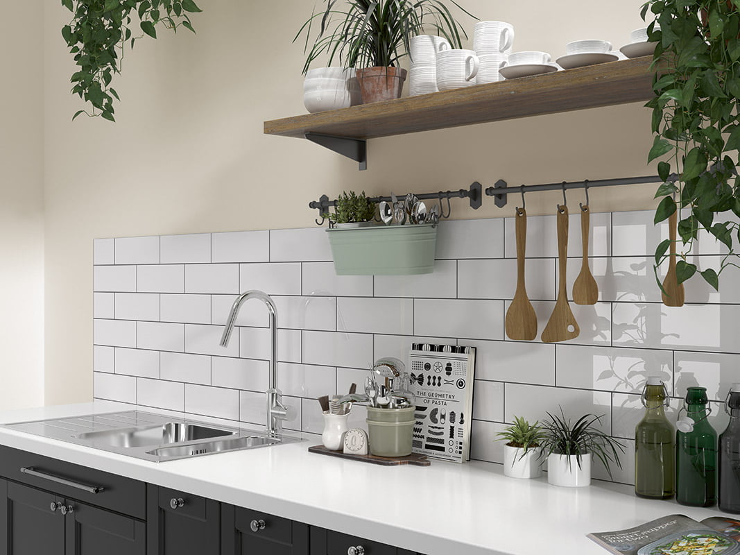 Serie azulejos blancos para baño y cocina.