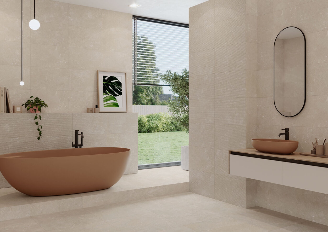 El acabado mate refuerza su apariencia natural y reduce reflejos, generando espacios más serenos y elegantes. Además, el rectificado permite colocar las piezas con juntas mínimas, logrando una sensación de continuidad que amplía visualmente las estancias.