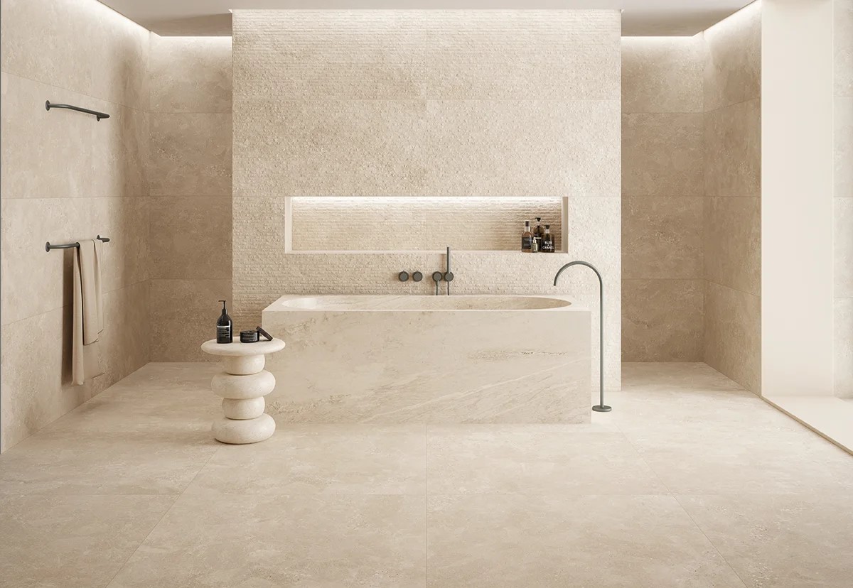 El tono Bone se caracteriza por su equilibrio cromático, un color neutro con matices suaves que encaja perfectamente en ambientes minimalistas, industriales o contemporáneos. Su destonificación moderada V2 aporta ligeras variaciones entre piezas, generando un efecto natural y dinámico sin perder uniformidad visual. Esto permite crear superficies amplias y elegantes con un acabado armónico.