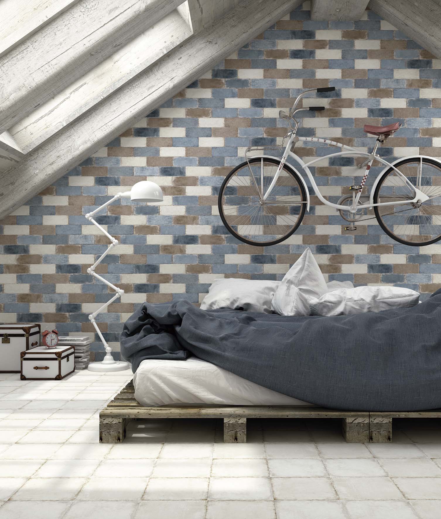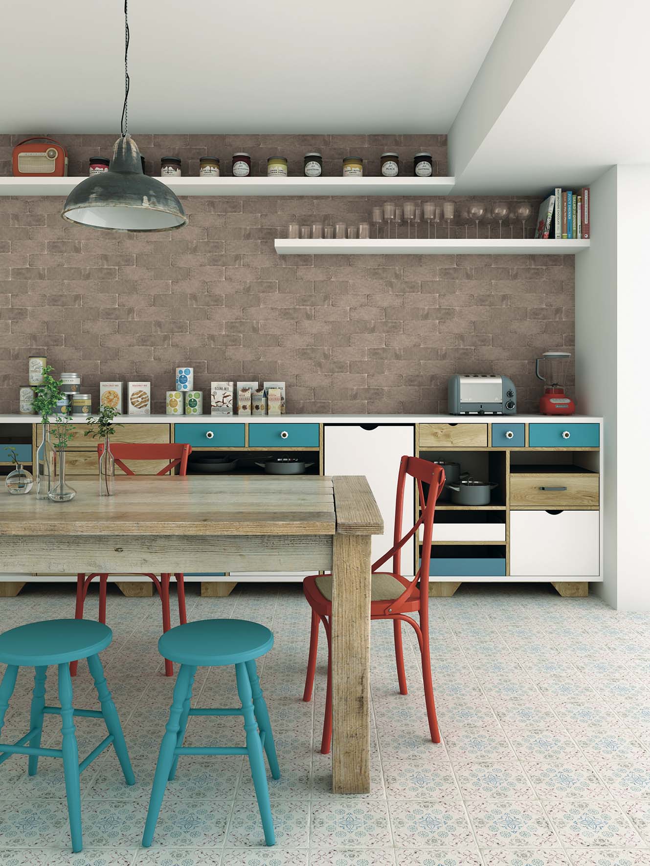 La inspiración de esta serie de azulejos para baño y cocina es volver al pasado, con una estética vintage donde priman los desgastados y las gráficas antiguas, buscando ese look retro.