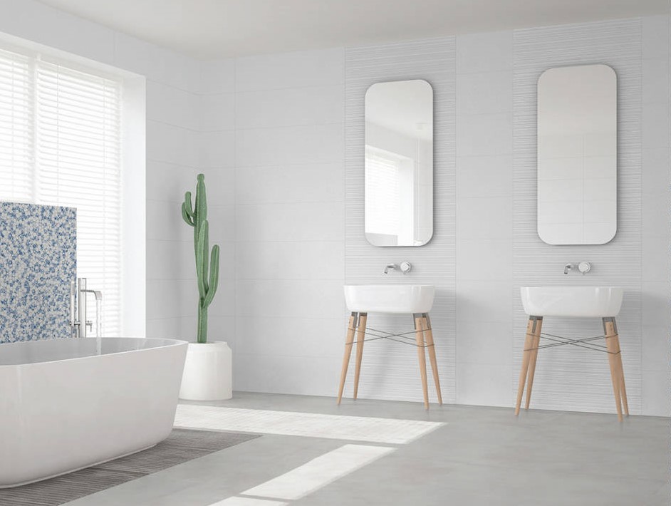 Su acabado brillante refleja eficazmente la luz, haciendo que los espacios parezcan más amplios y luminosos. Este efecto se ve reforzado por su diseño lineal, que aporta un toque de dinamismo y estructura sin recargar visualmente el entorno. Perfecto para proyectos de baños, cocinas, salones o pasillos, White Lines Brillo se adapta a diferentes estilos decorativos gracias a su tono blanco neutro, que combina con facilidad con otros materiales como piedra natural, madera o acabados metálicos.