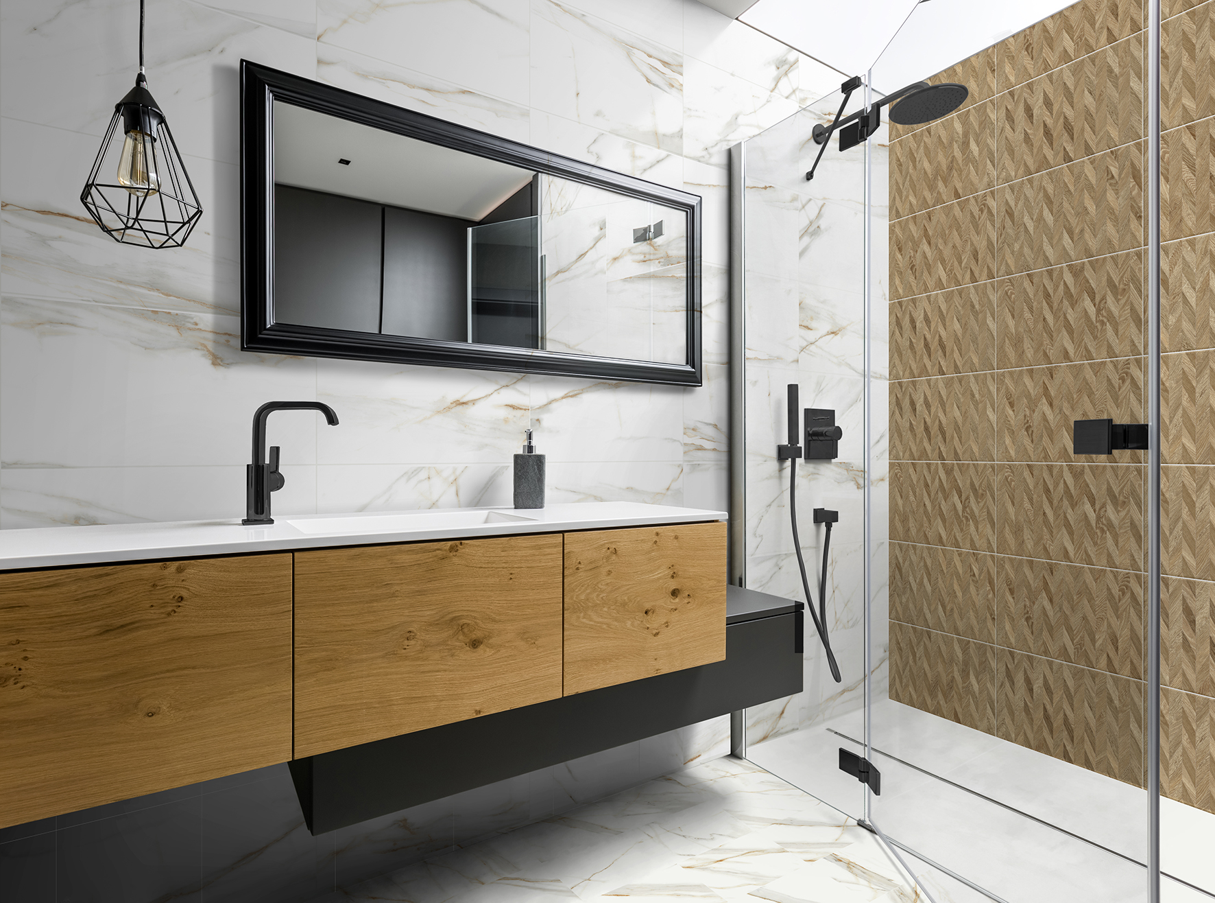 Fabricado en porcelánico de alta calidad, Wood Espiga Oak es resistente al desgaste, a los productos de limpieza y a la humedad, lo que lo convierte en una opción duradera y funcional para zonas de alto tránsito y ambientes húmedos. Su diseño en espiga, en tonos de roble, aporta un toque de distinción que encaja perfectamente en cualquier estilo decorativo.